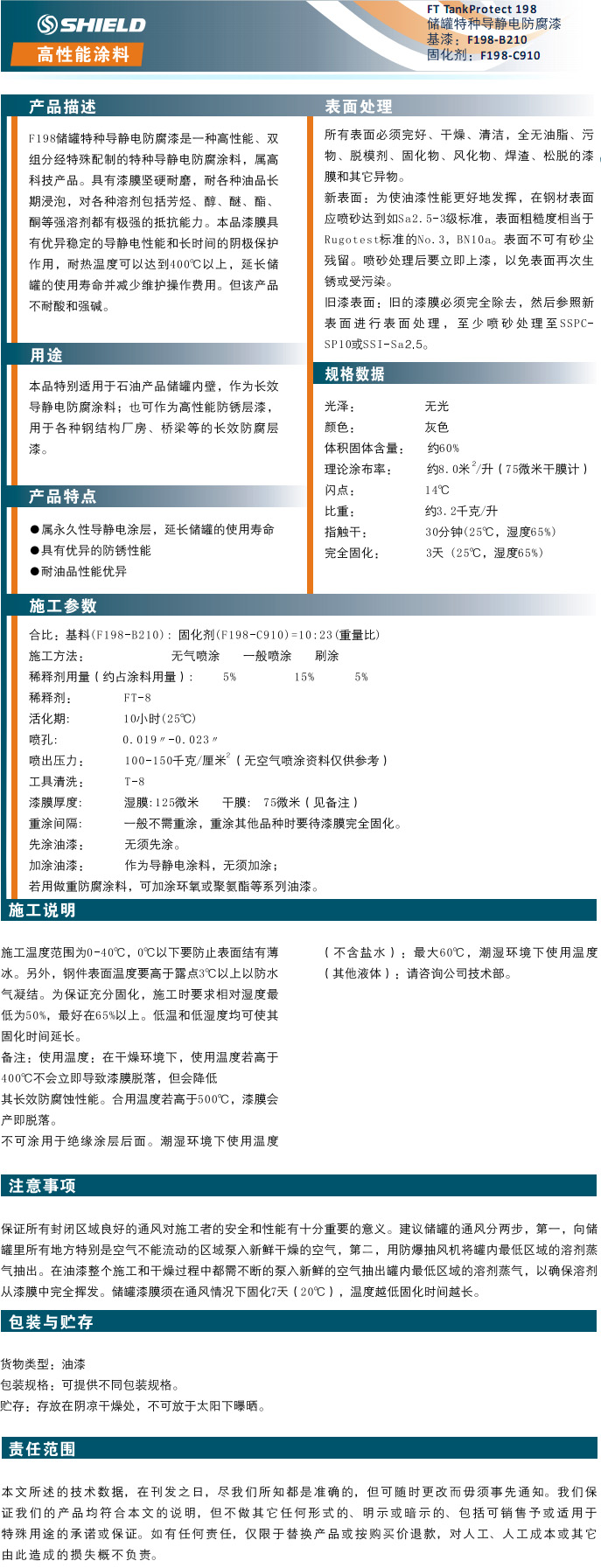 Shield F198储罐特种导静电防腐漆